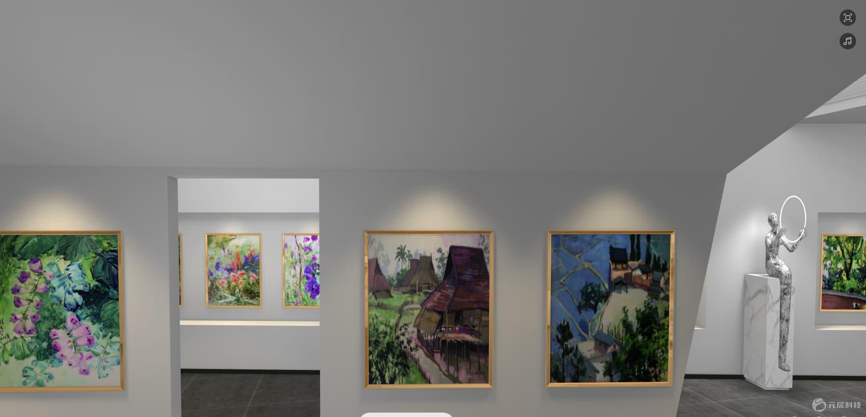 3D漫游技术让线上美术作品展的沉浸感大幅提升。观众可以自由控制数字人漫游,探索美术作品展的每一个角落,甚至能够发现一些在线下展览中容易忽略的细节,从而获得更加全面和深入的观展体验。