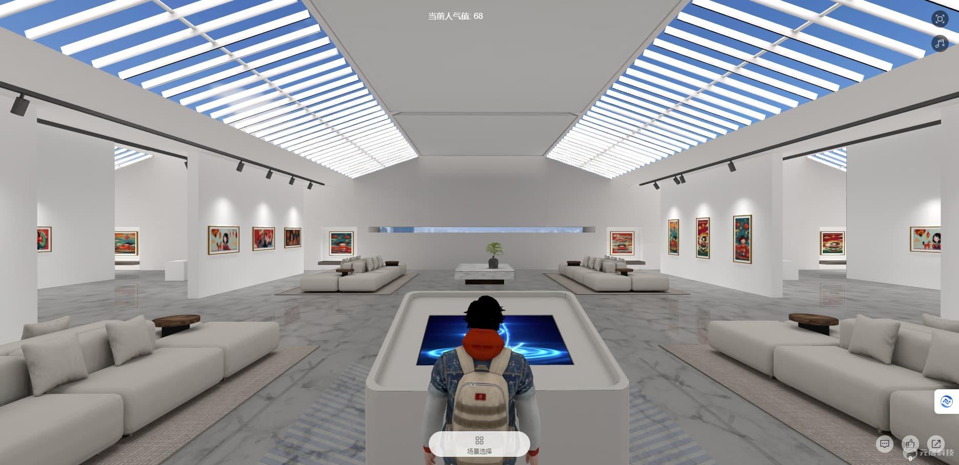 元居虚拟空间编辑平台支持多种格式素材的智能导入,艺术家只需将精心挑选的作品上传至素材库,便可通过拖拽操作轻松完成布展。艺术家还可以自由调整作品展示的角度、距离和背景,确保每一件作品都能以最完美的姿态呈现给观众。